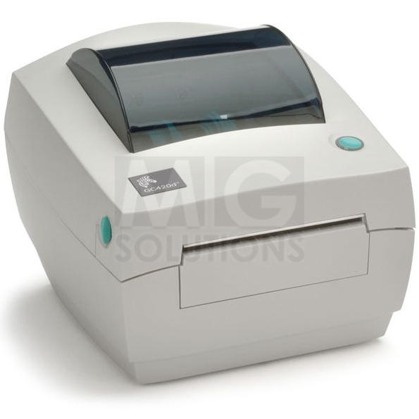 Impressora de Secretária Zebra GC420 Transferência térmica em 203 dpi e 102mm de largura de impressão Com dispensador da etiqueta Com porta serial, paralela, USB e 8Mo de memória Flash