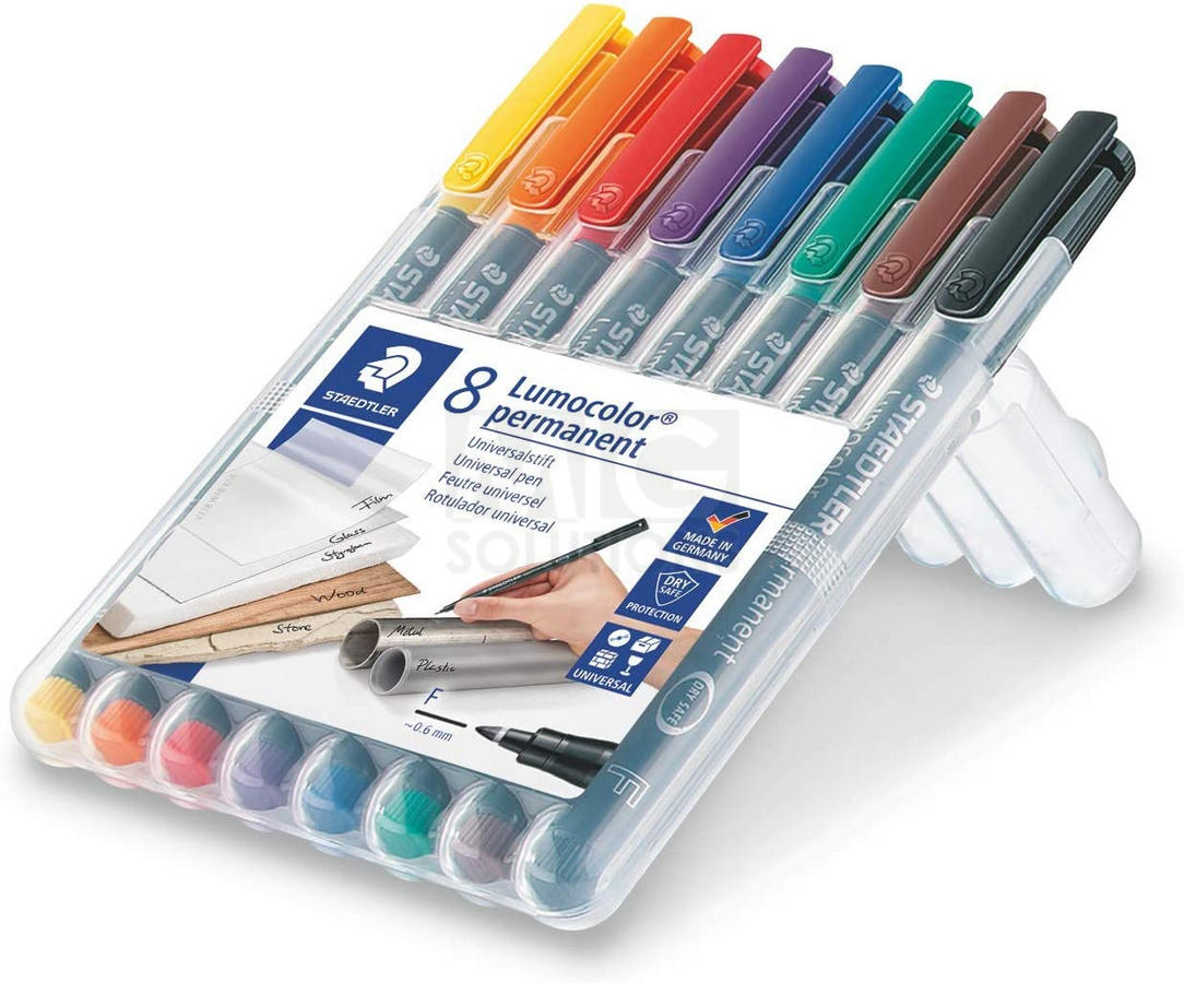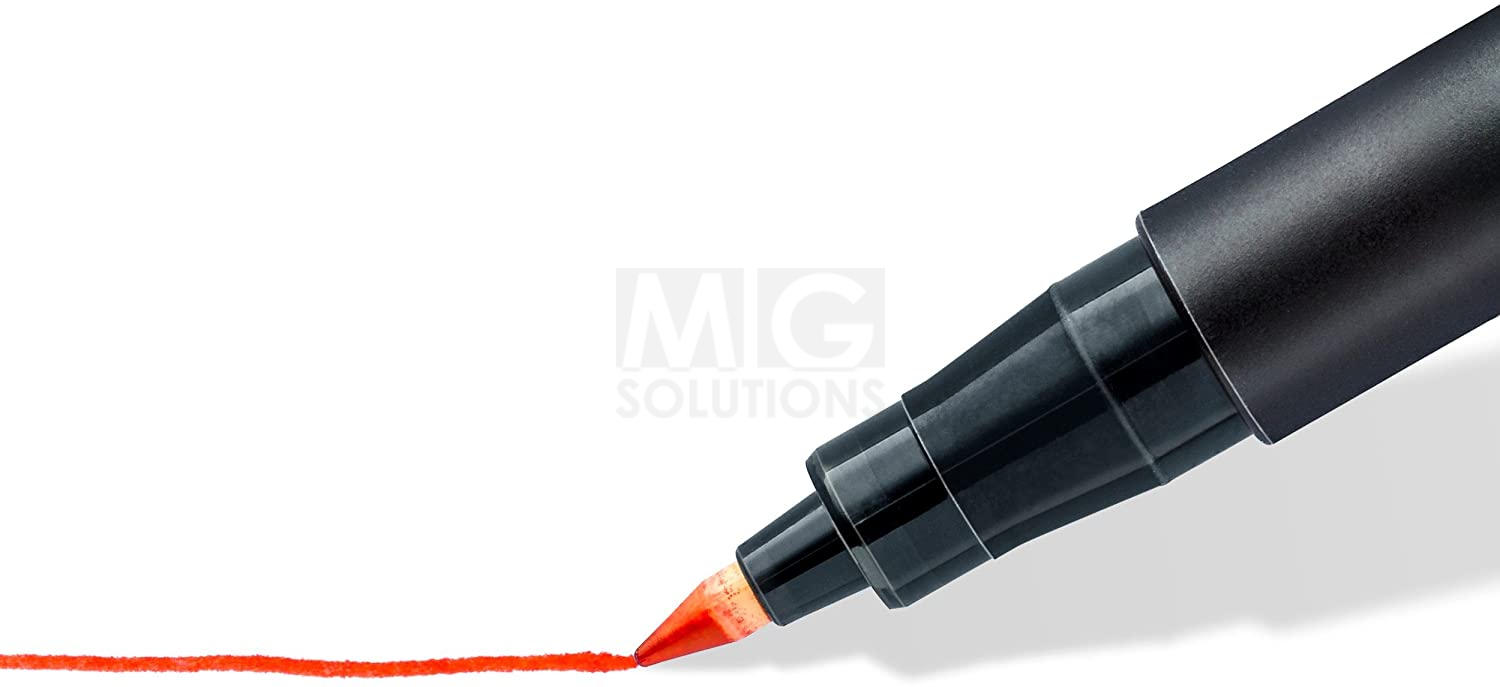 Caneta universal para quase todas as superfícies Suitable for overhead projection Excelente resistência à água e à sujidade em quase todas as superfícies Seca em segundos, por isso é ideal para utilizadores esquerdinos Tinta permanente, inodora Resistentes à ação da luz: preta e castanha A cor preta resiste à acção do tempo Exclusiva caixa STAEDTLER Corpo e tampa em polipropileno (PP) garantem uma longa duração DRY SAFE: Pode permanecer destapado durante dias sem secar (Norma ISO 554) Airplane-safe: sistema automático de equalização de pressão, previne o derrame enquanto a bordo de aviões Cores altamente brilhantes Espessura do traço fina de aprox 0.6 mm Recarregável