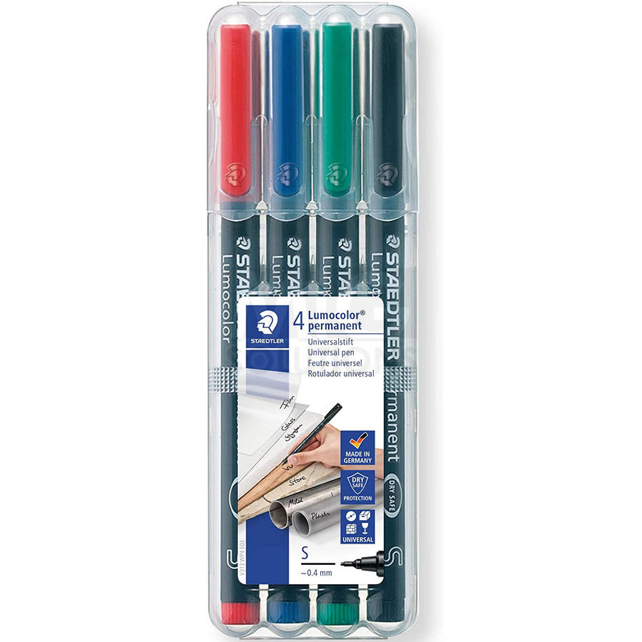 Caneta universal para quase todas as superfícies Suitable for overhead projection Também para CD/DVD Excelente resistência à água e à sujidade em quase todas as superfícies Seca em segundos, por isso é ideal para utilizadores esquerdinos Tinta permanente, inodora Resistentes à ação da luz: preta e castanha A cor preta resiste à acção do tempo Exclusiva caixa STAEDTLER Corpo e tampa em polipropileno (PP) garantem uma longa duração DRY SAFE: Pode permanecer destapado durante dias sem secar (Norma ISO 554) Airplane-safe: sistema automático de equalização de pressão, previne o derrame enquanto a bordo de aviões Cores altamente brilhantes Espessura de traço S (aprox. 0.4 mm) Recarregável